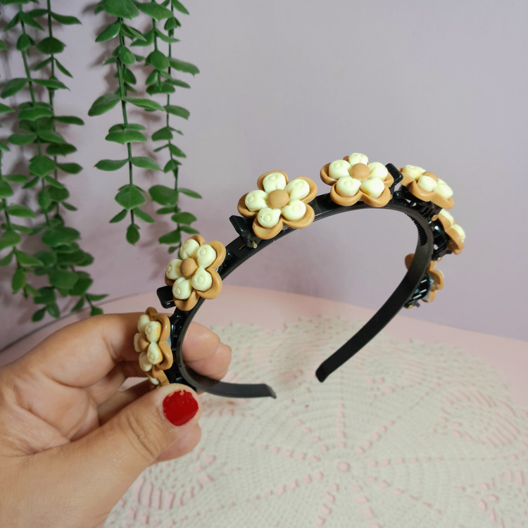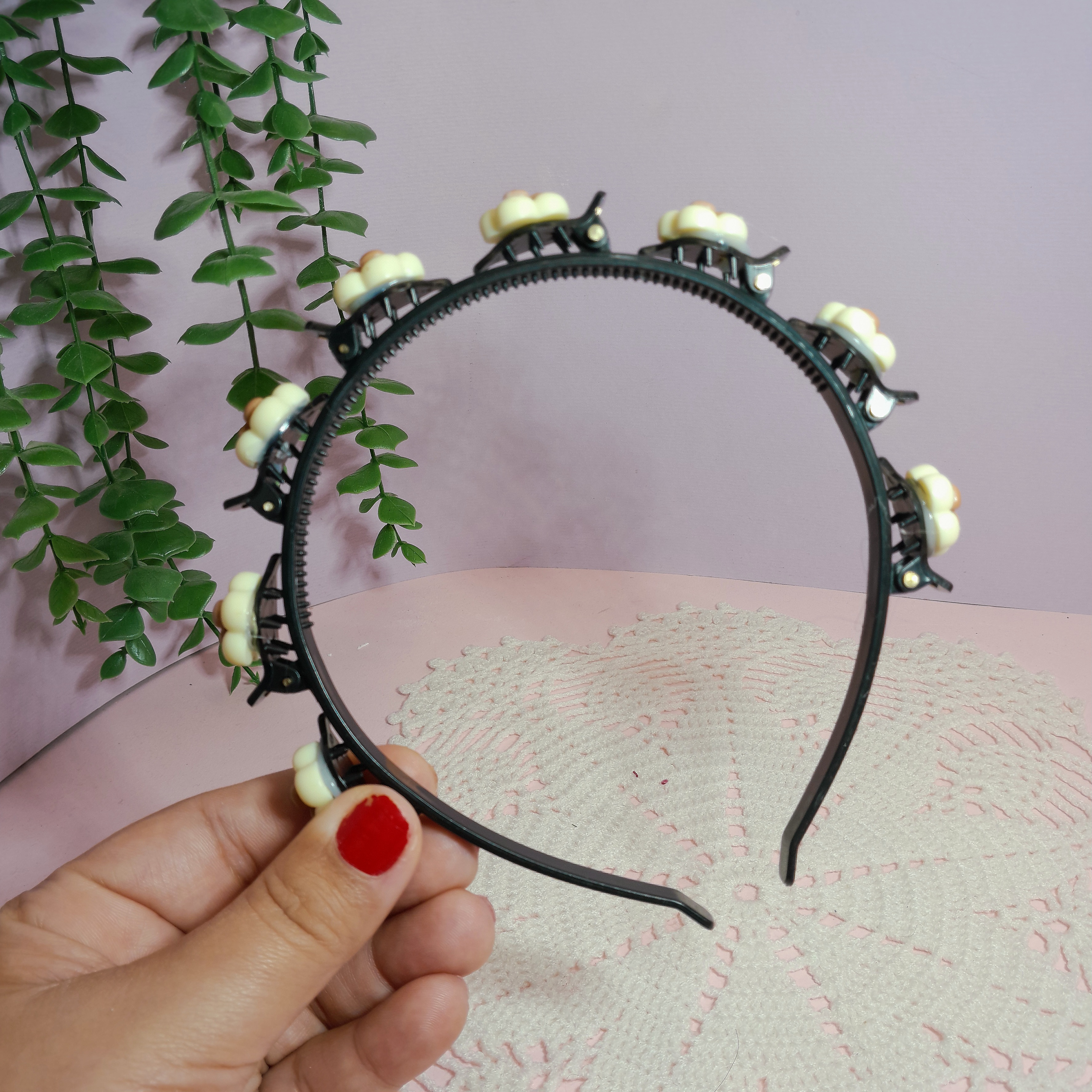 تل ازقسمت زیر دندانه دارد و ازروی تل گیره های کوچک نصب شده که میتوانید موهارا ازقسمت جلو بافت بزنید ویا به حالت پیچ به گیره ها متصل کنید و موهارا مرتب و تزیین کنید