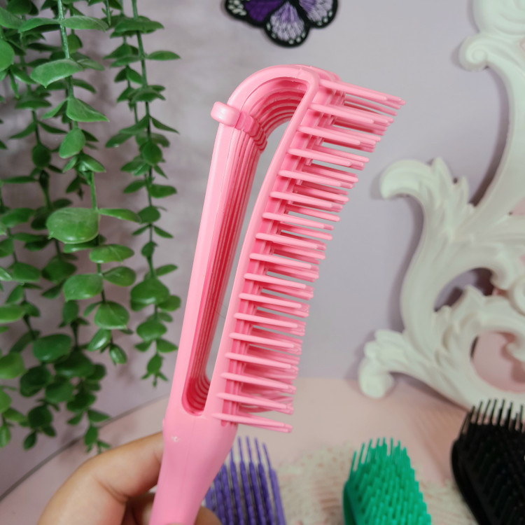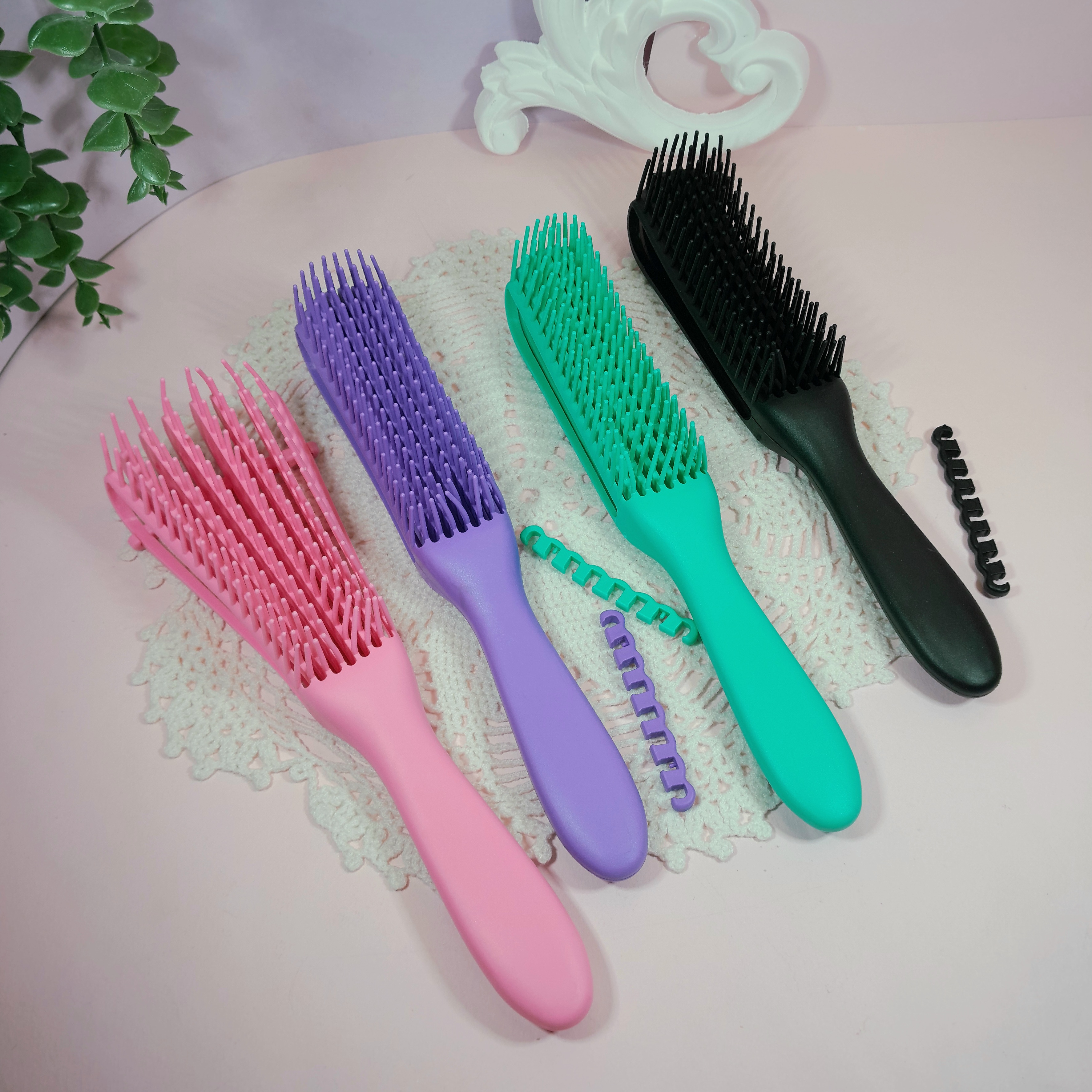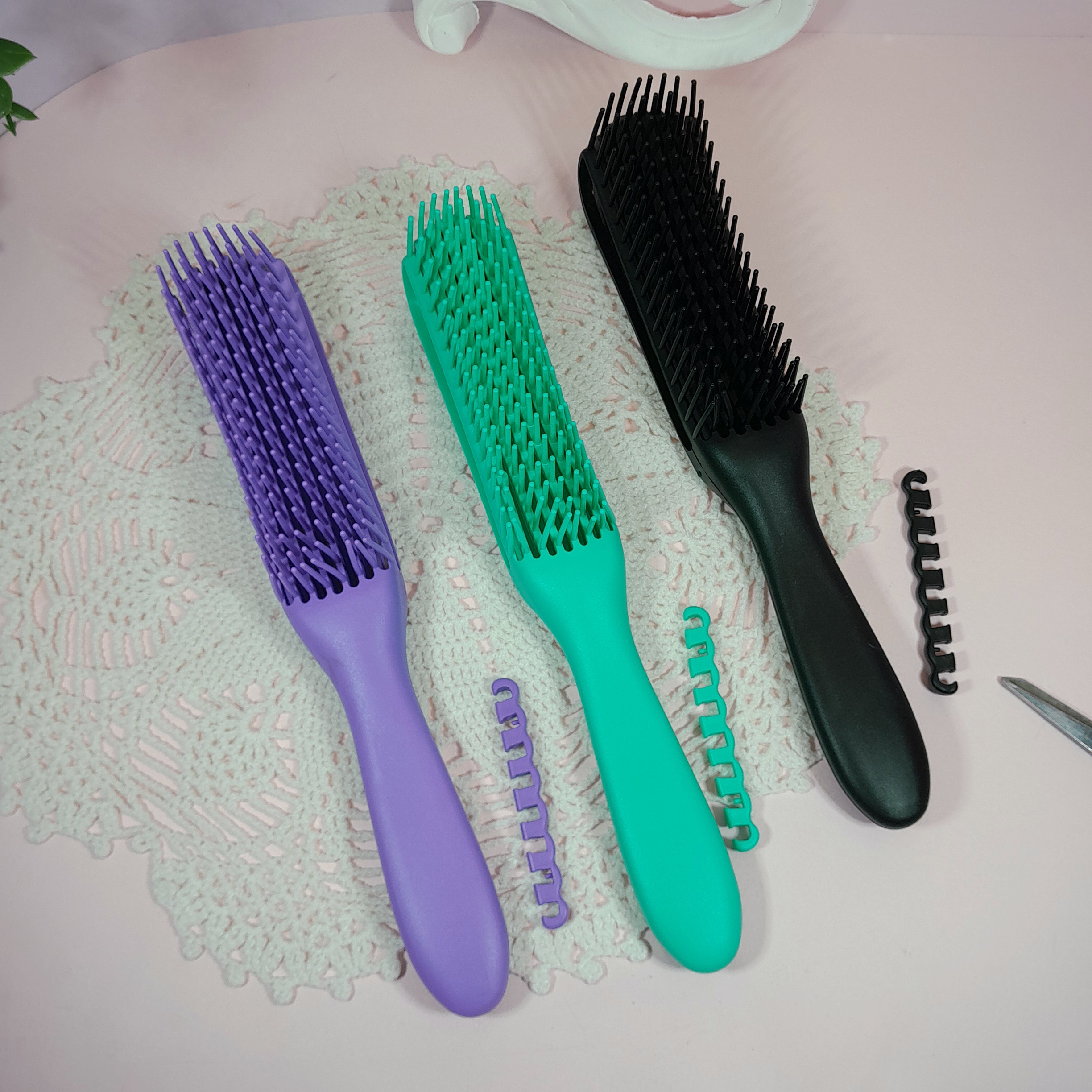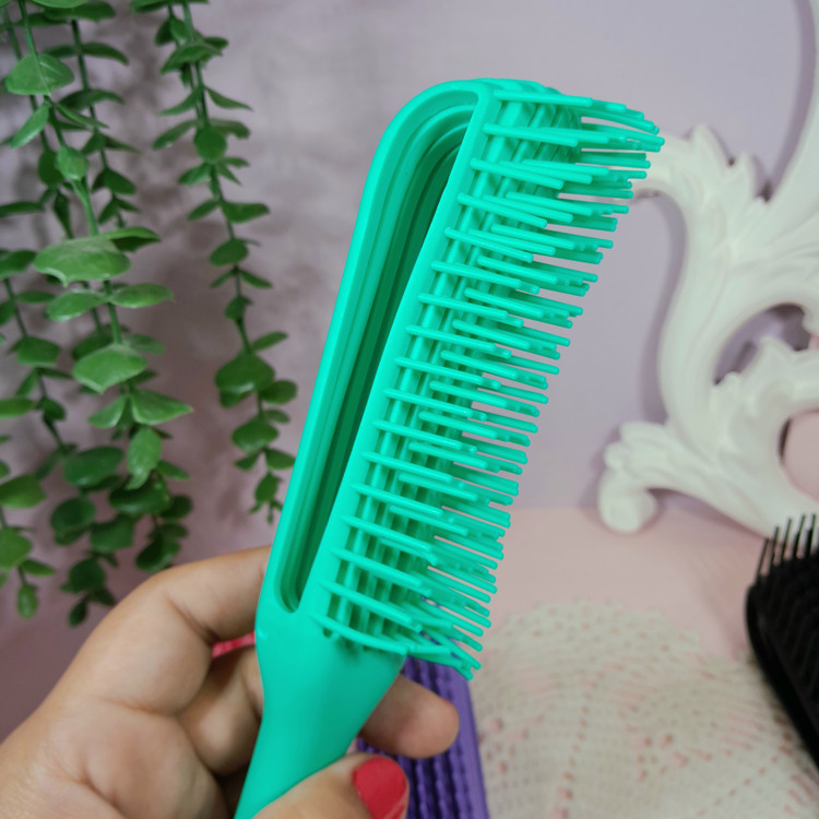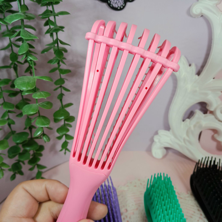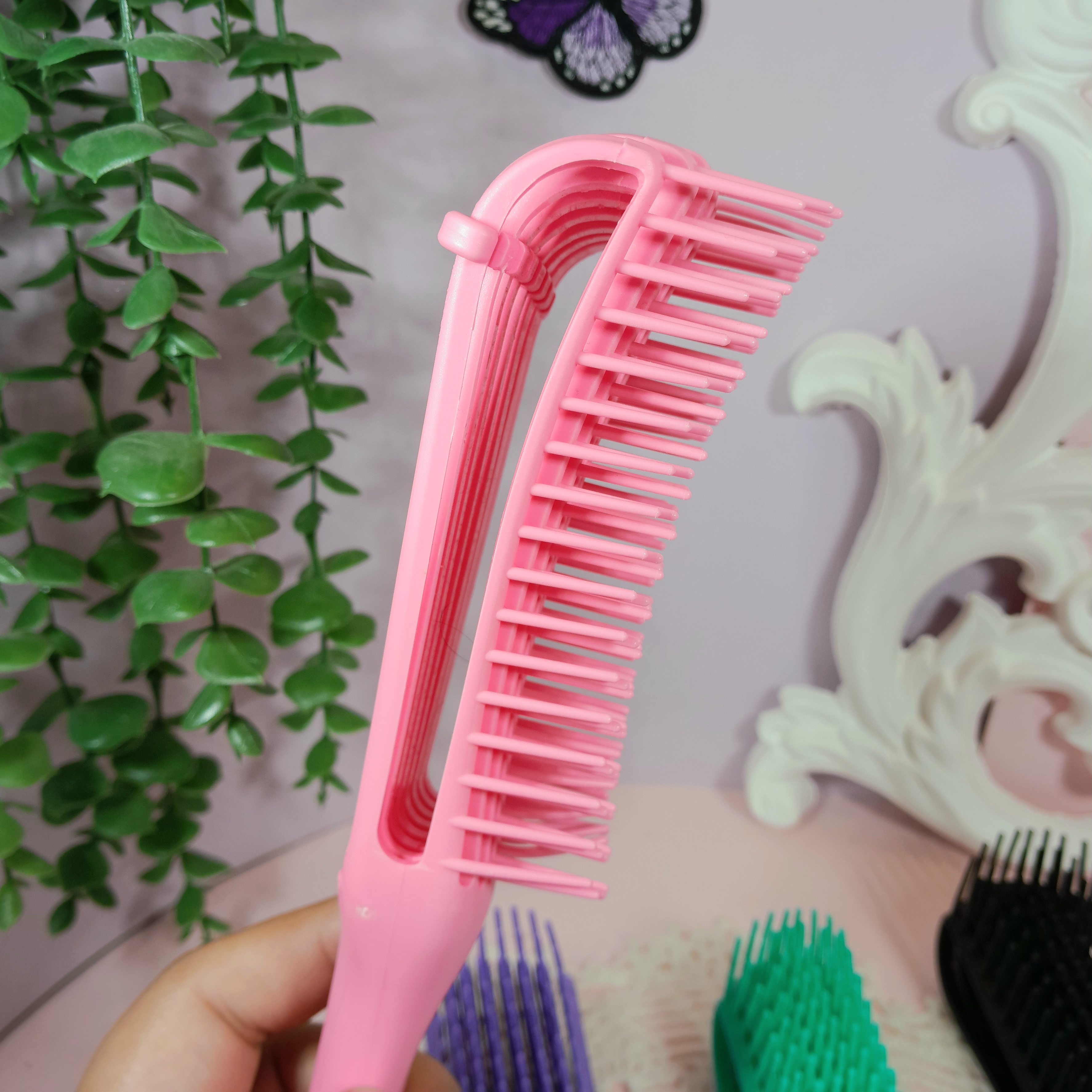 این برس معروف به برس فلکسی اختاپوسی و مناسب باز کردن گره ی موهای فر ریز فردرشت موج دار و انواع مو فر است جنس پلاستیک منعطف دارد خیلی محکم وخوش دست است هشت ردیف باریک دارد که با یک نوار به هم متصل میشوند و میتوانید از این نوار استفاده کنید یا میتونید نوار رو بردارید این برس یکی از محبوب ترین برس ها بین موفرفری هاست چون مو ها را نمیکشد و خیلی راحت ونوازشی گره های سخت مو ها را باز میکند این برس را میتوانید تنظیم کنید اگر موهای پر و کوتاهی دارید نوار پشتی برس را بالا تنظیم کنید و اگر موهای بلند و ضخیمی دارید نوار را پایین تنظیم کنید نواری که روی شانه قفل شده از قسمت پشت شانه دو محل دارد که برای تنظیم است