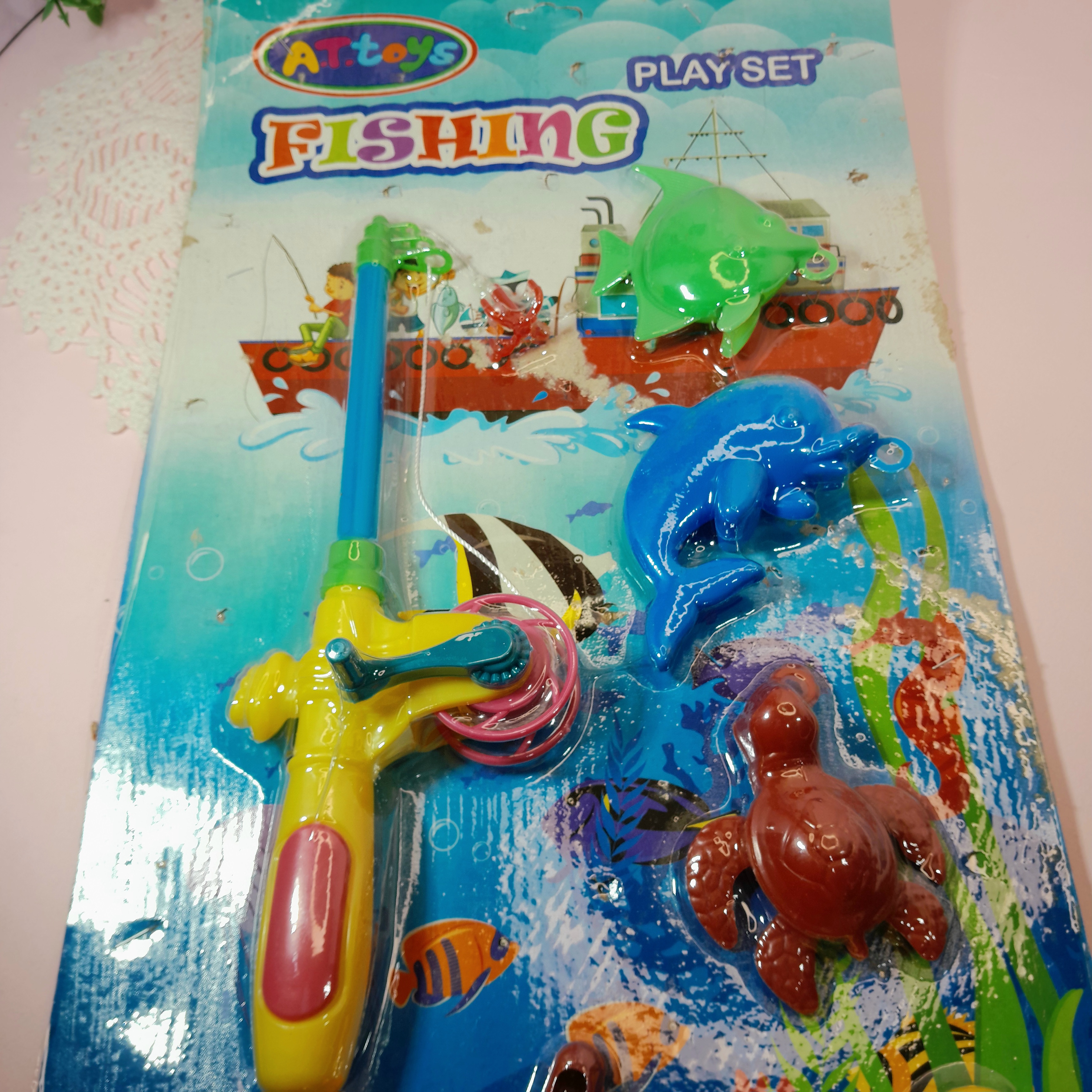قلاب ماهیگیری اسباب بازی با سبد و ماهی و...