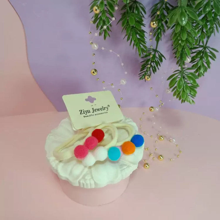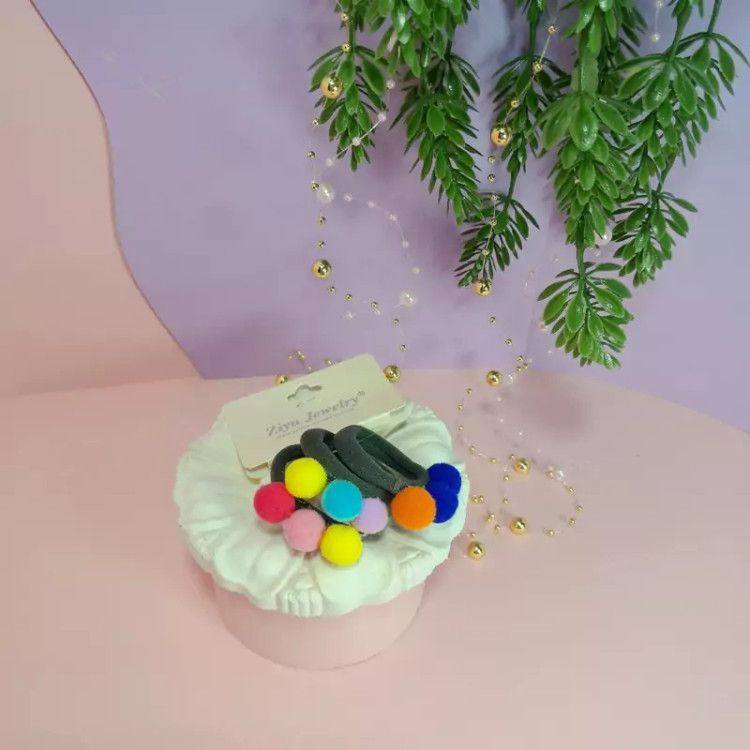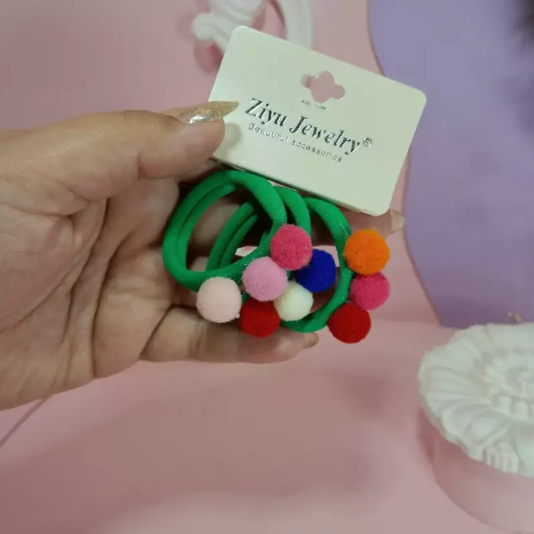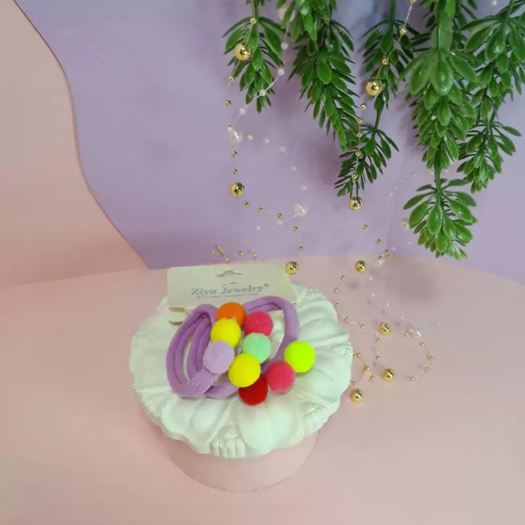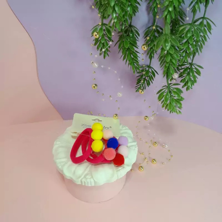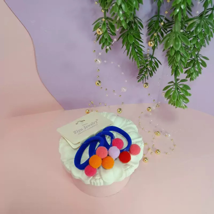 یک بسته 3تایی کش مو حوله ای پوم پوم دار رنگی رنگی