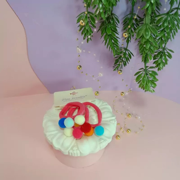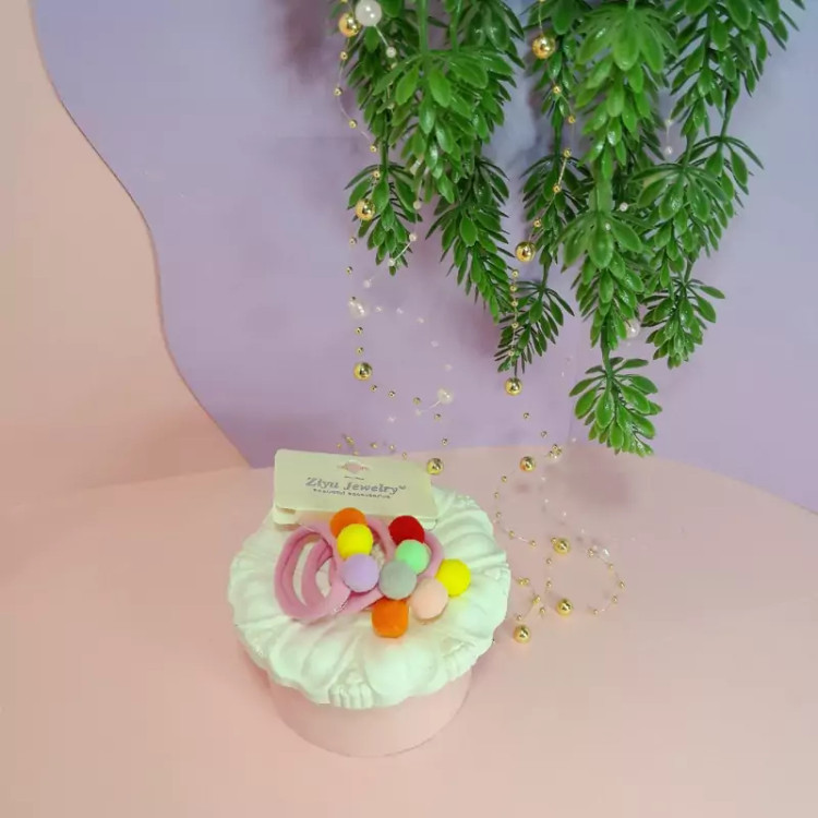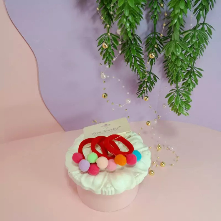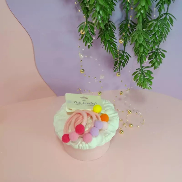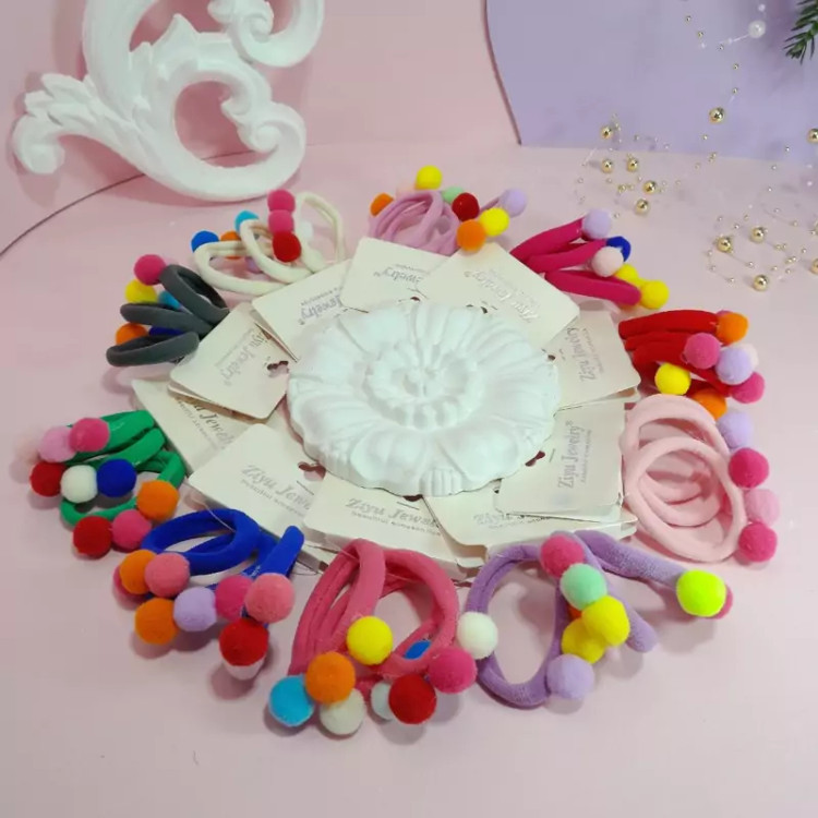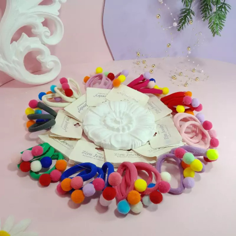 یک بسته 3تایی کش مو حوله ای پوم پوم دار رنگی رنگی