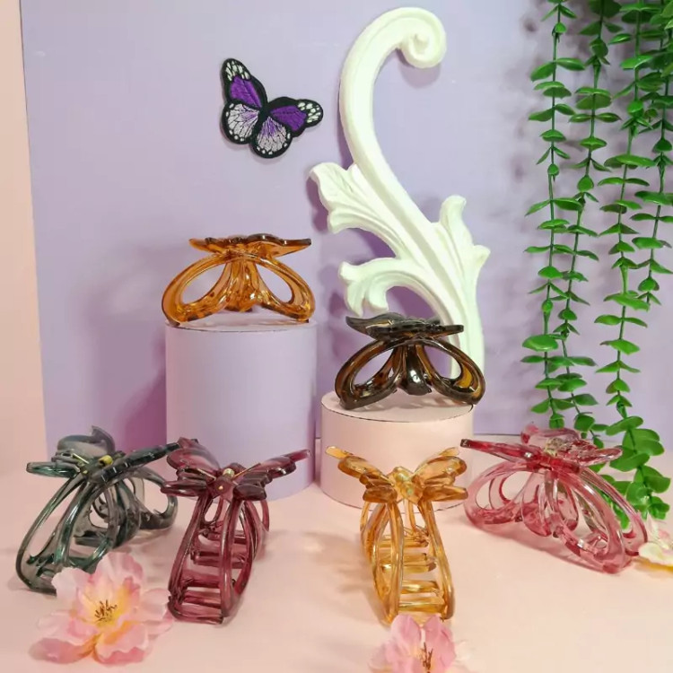 کلیپس 9سانتی شفاف طرح پروانه رنگبندی زیبا و متنوع کیفیت بسیار خوب ومناسب موی با حجم متوسط