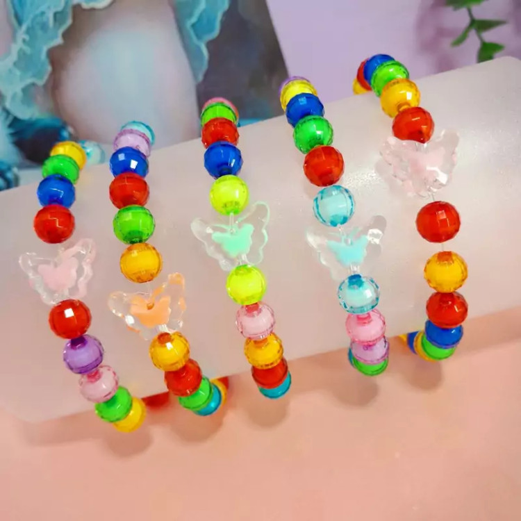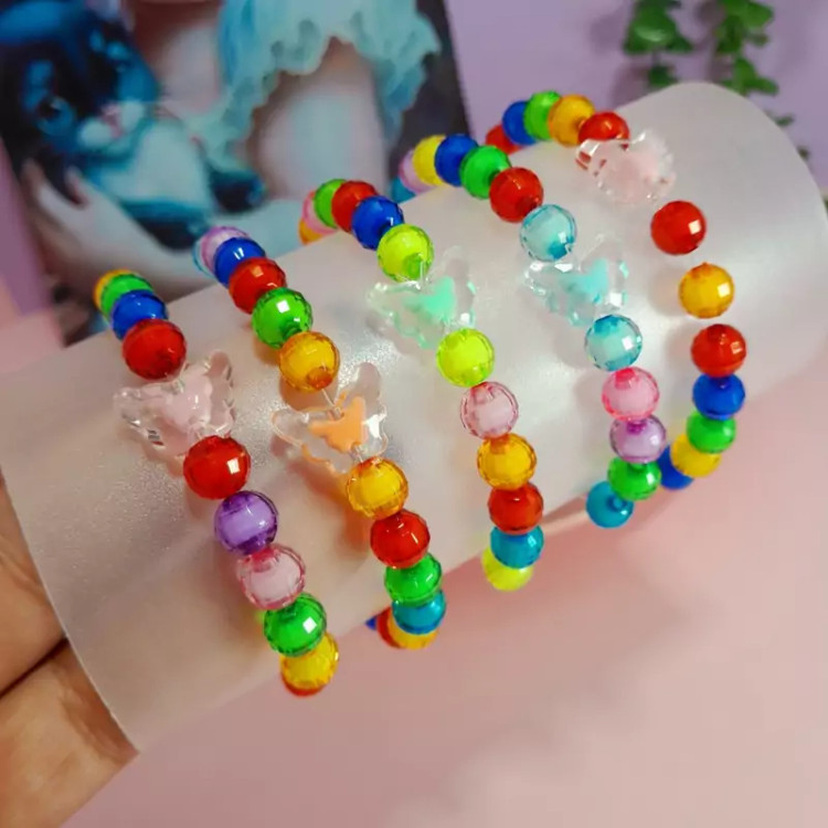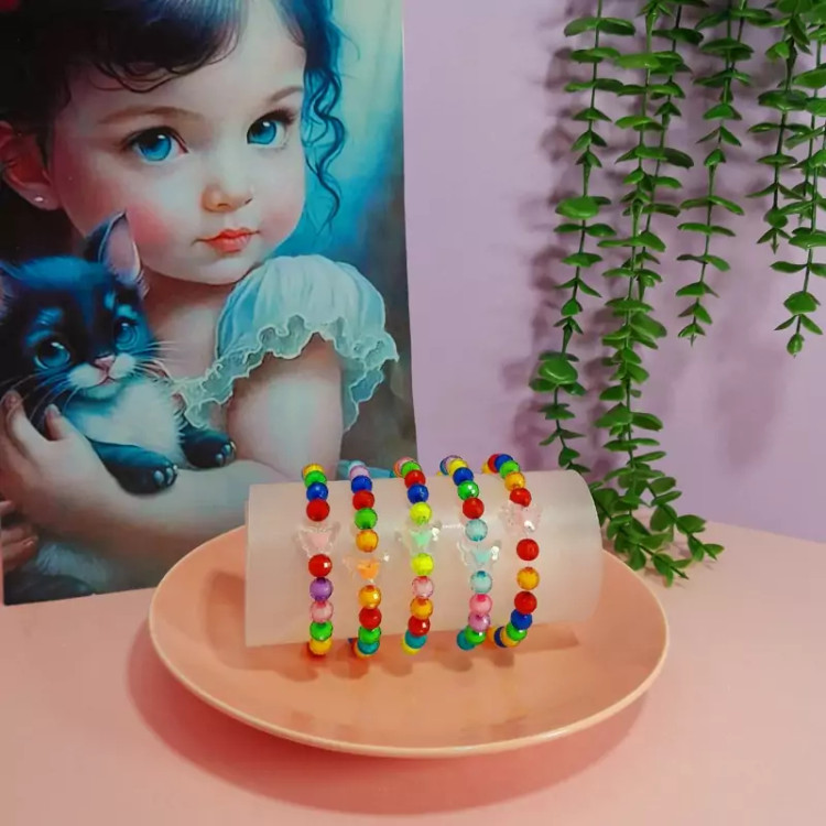 دستبند کشی دخترانه رنگی رنگی جذاب مهره کریستالی گرد و پیکسل پروانه دخترکوچولوت هررنگی دوستداره همونوسفارش بده کد رنگاشو ثبت کردم