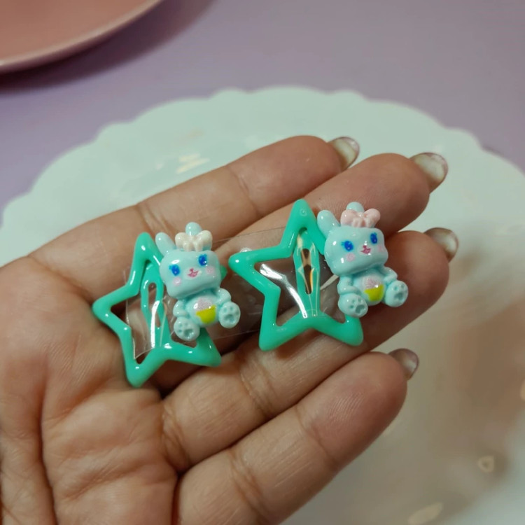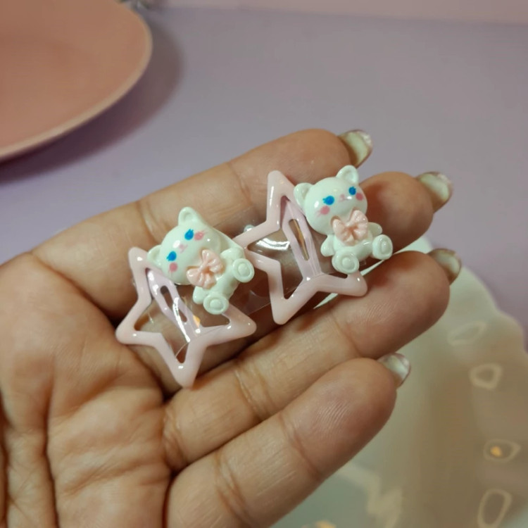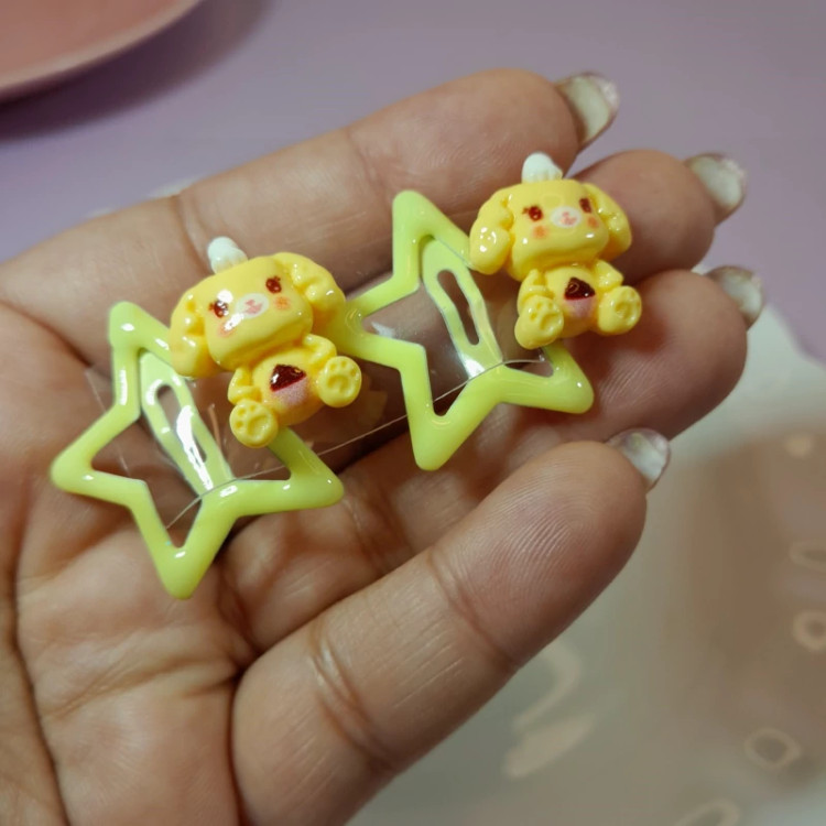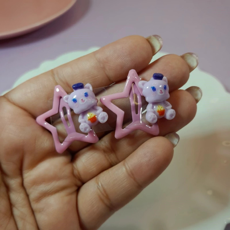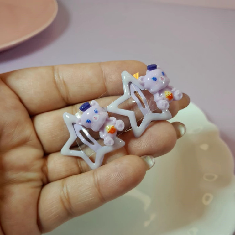 گیره مو تق تقی لاکی نوزادی طرح ستاره با پیکسل عروسکی خوش رنگ وارداتی برای تزیین موهای نوزاد کوچولوی شما