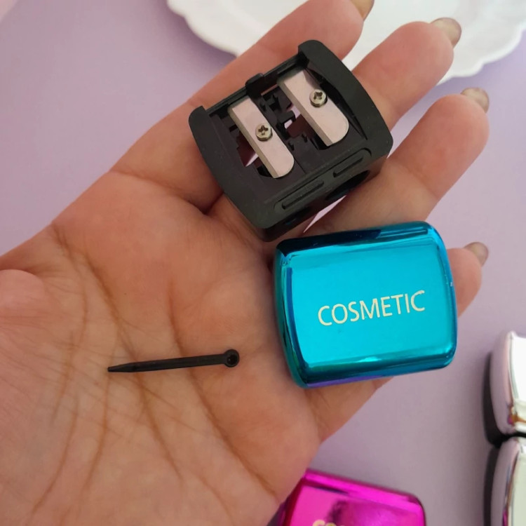 تراش دوقلو کاسمتیک تیز ومقاوم و عالی برای مداد باریک و ضخیم مداد آرایشی رو بتراشید و مخزن تراشوبازکنیدو آشغالشودوربریزید اگه از مواد مداد به تراش مانده بود با قلم مخصوص که در تراش جاساز شده آنراتمیزکنید