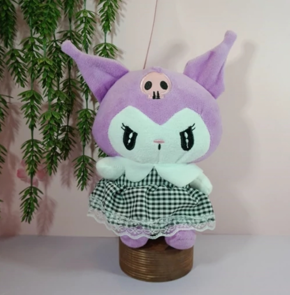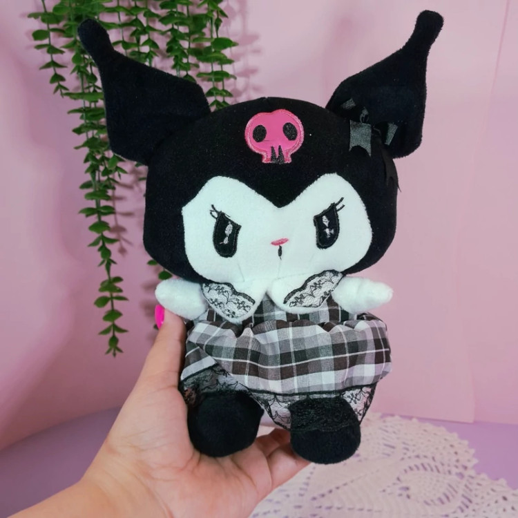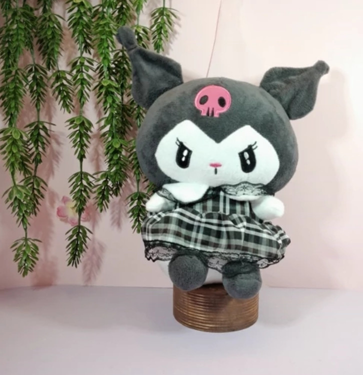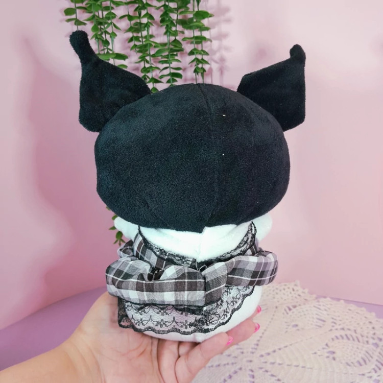 عروسک مخملی کرومی رنگ مشکی باپیراهن چهارخانه