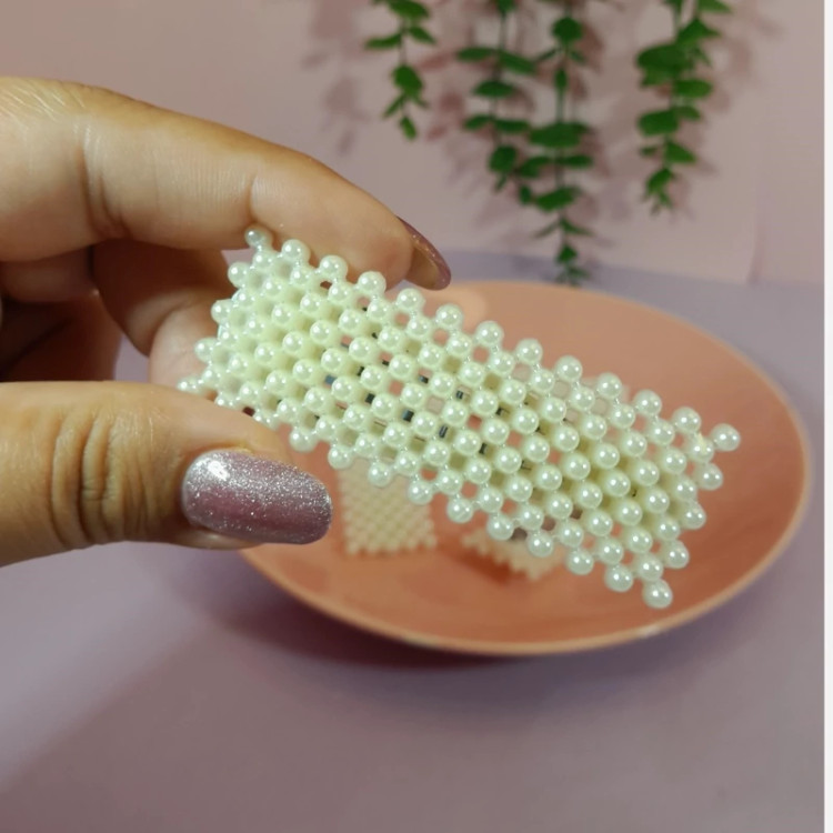 گیره مو تق تقی مرواریدی 7سانت طول گیره ظاهر زیبا و جذاب برای تزیین جلوی موها