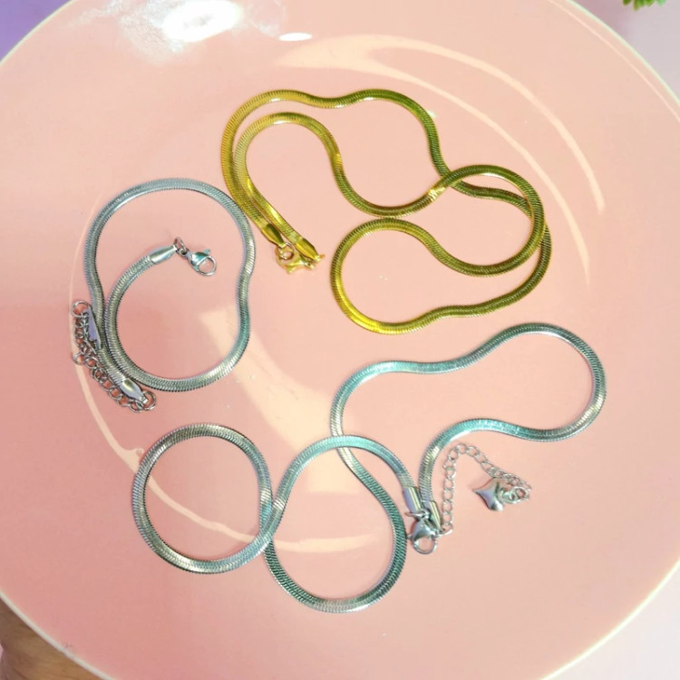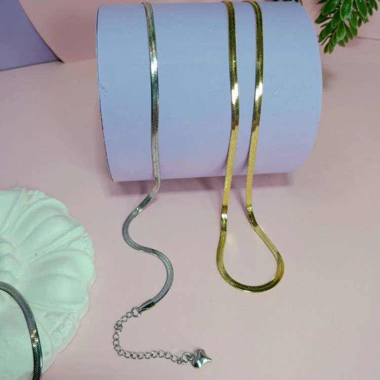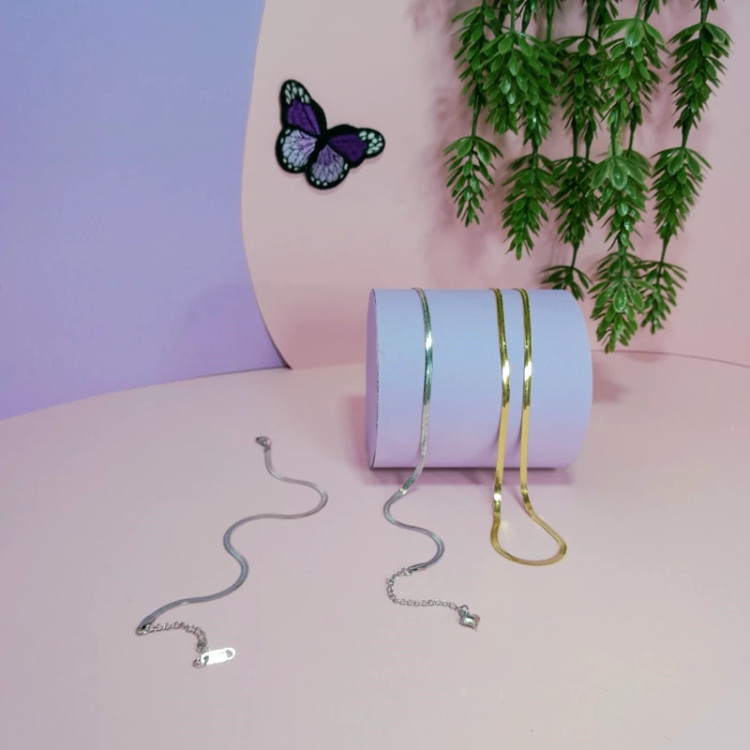 گردنبند ماری دررنگ نقره ای و طلایی رنگ ثابت و با کیفیت عالی و پابند نقره ای ماری گردنبند45سانتی پابند23سانتی