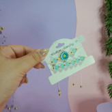 دستبند کشویی گل بابونه رنگ صورتی و رنگ آبی روشن دوتایی هستن یک ردیف مرواریدی و یک لاین بابونه و مروارید و رنگ آبی کاربنی سه لاین هست یک ردیف فیمو یک ردیف بافت و یک ردیف گل تکی بابونه است