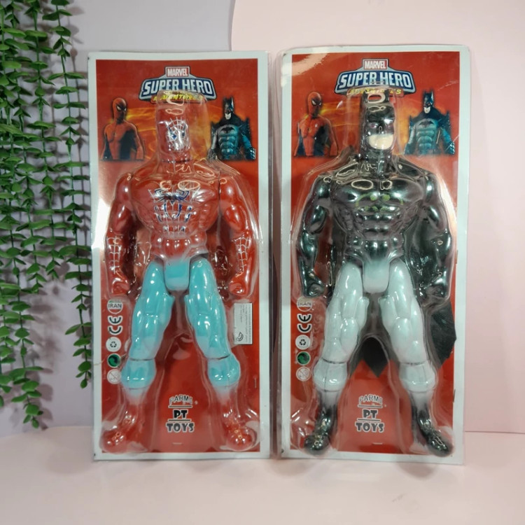 فیگورهای ساخت ایران تهیه شده ازبهترین نوع مواد دست و پا دارای مفصل و خم میشود و سر حالت چرخشی دارد بسته بندی به صورت کارتی و اندازه فیگور 32سانت است دردومدل بت من و مرد عنکبوتی موجود است