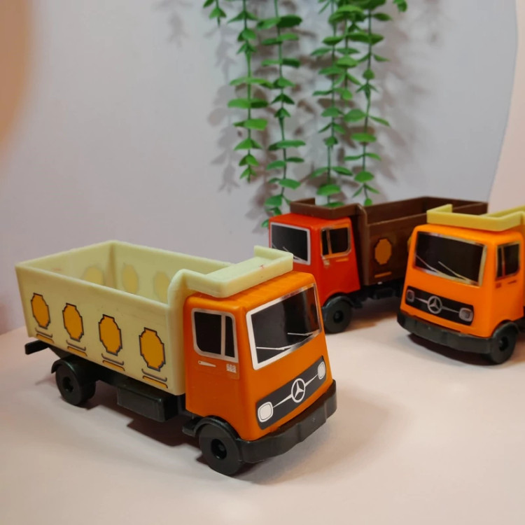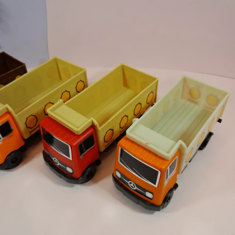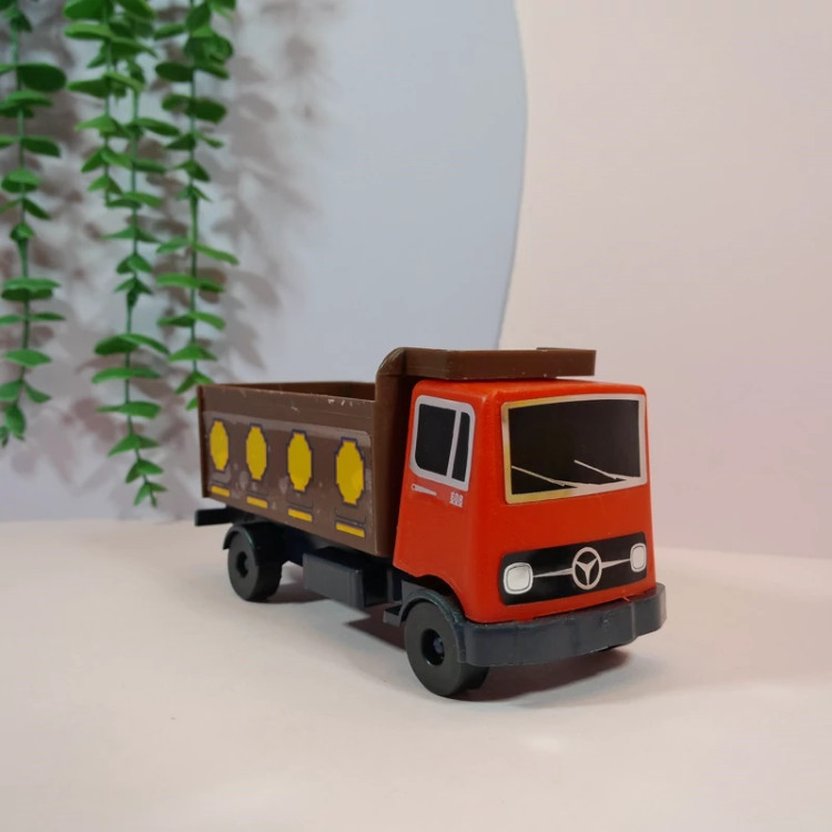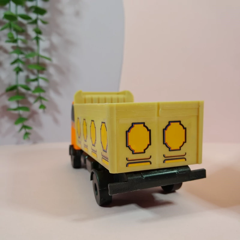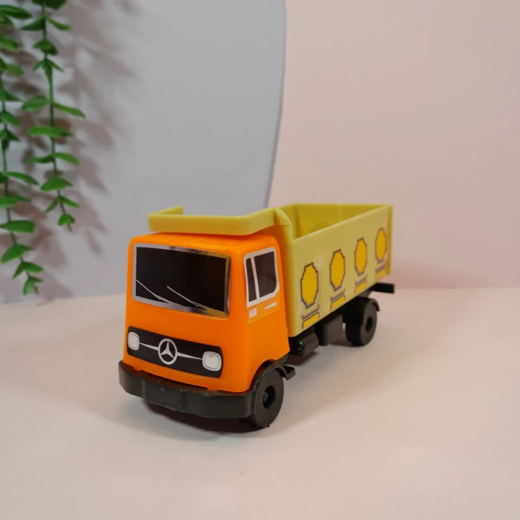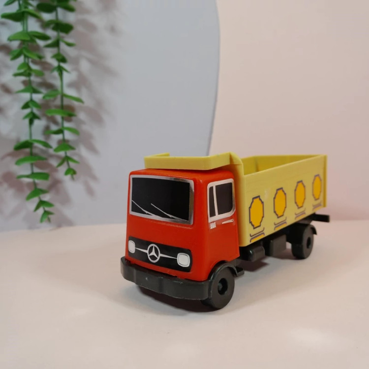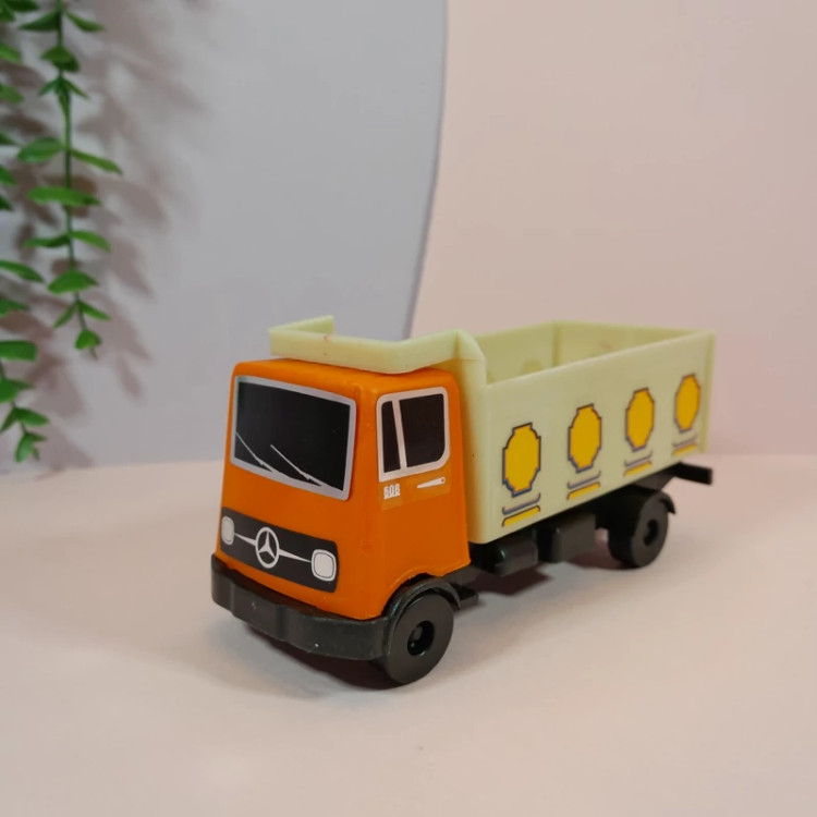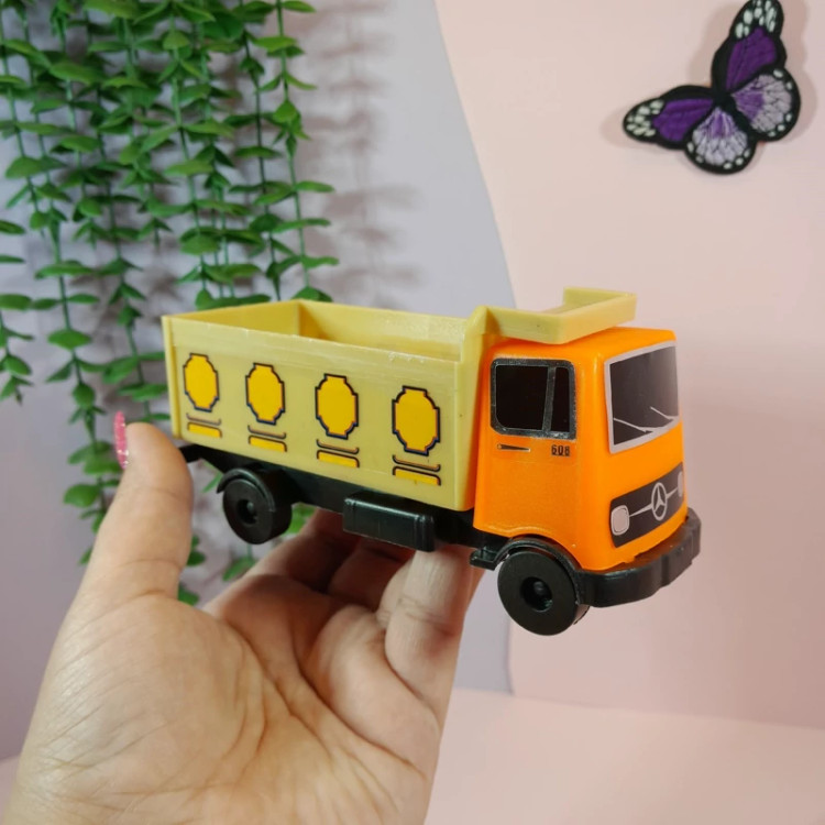 کامیون بامزه خاور بنز با ابعاد14×6×7 دودورنگ قرمز و نارنجی اسباب بازی اقتصادی پ
