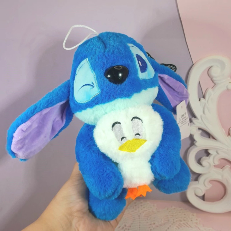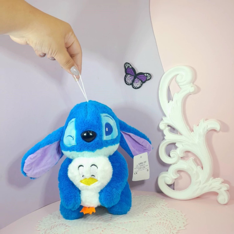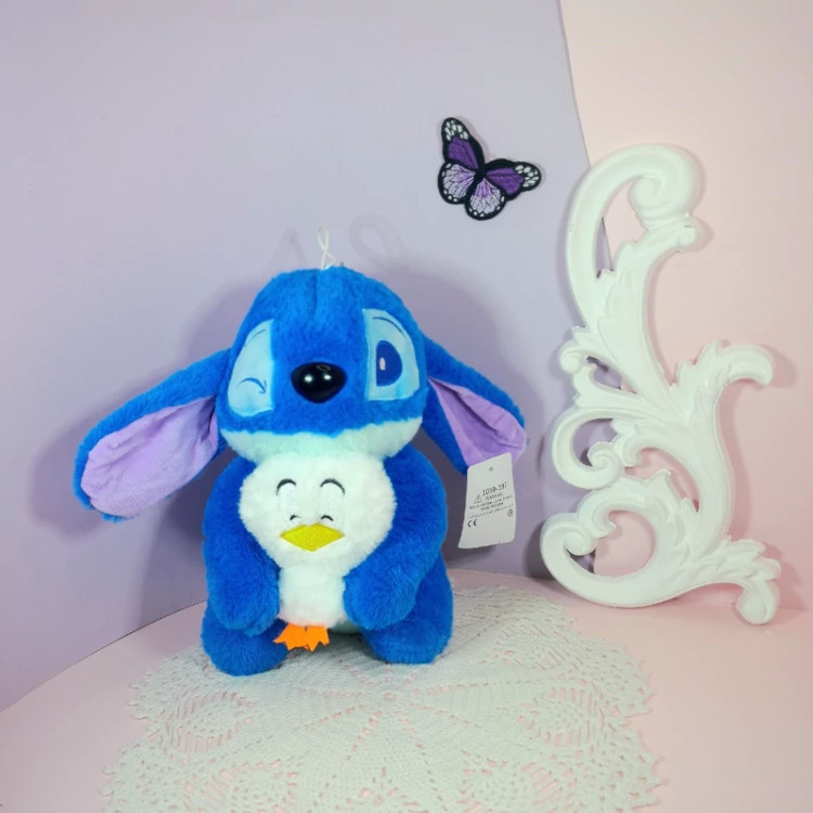 عروسک گوگولی استیچ وارداتی و باقد 25سانت پولیش درجه یک یه جوجه اردکم بغلشه