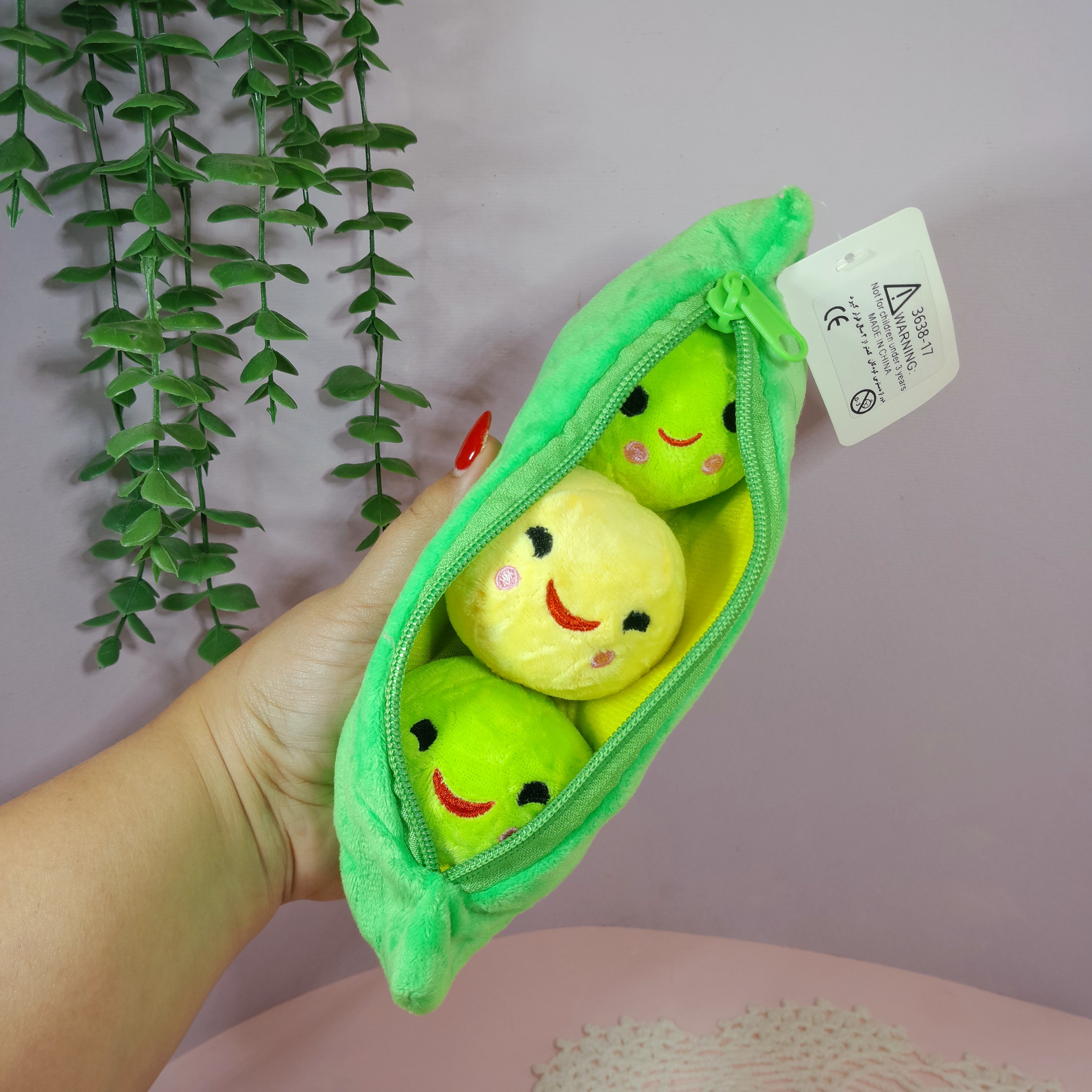 عروسک نخود فرنگی پولیشی وارداتی سه تا نخود فرنگی داخل یک محفظه زیپ دار هستن دورنگ هستن